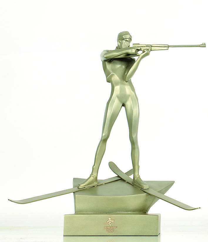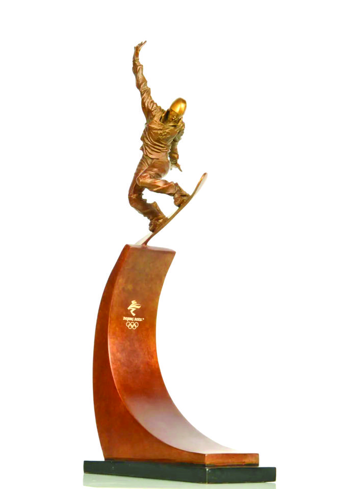 《冬奥之尊》,高56厘米,由国家一级美术师孙红创意设计,宇达公司精心铸造制作。