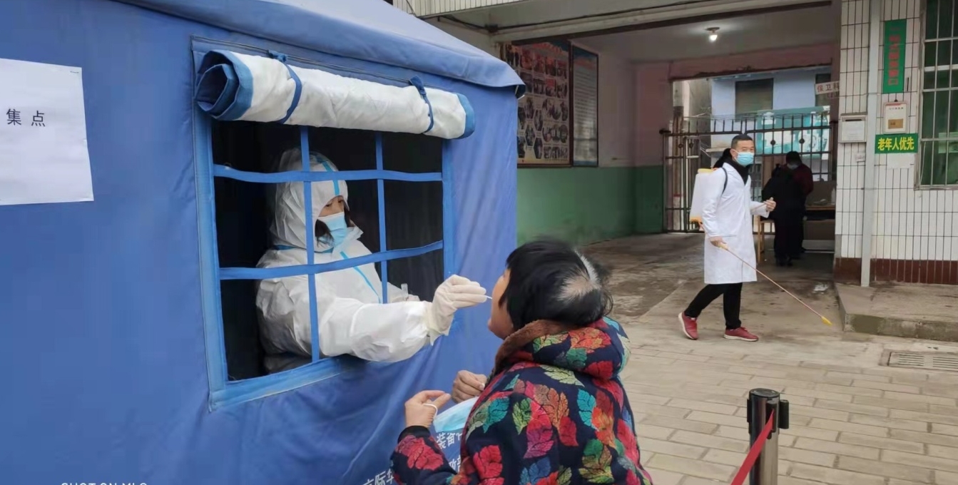 2月15日,夏县医疗集团祁家河中心卫生院医务人员,在对辖区群众进行核酸采样。