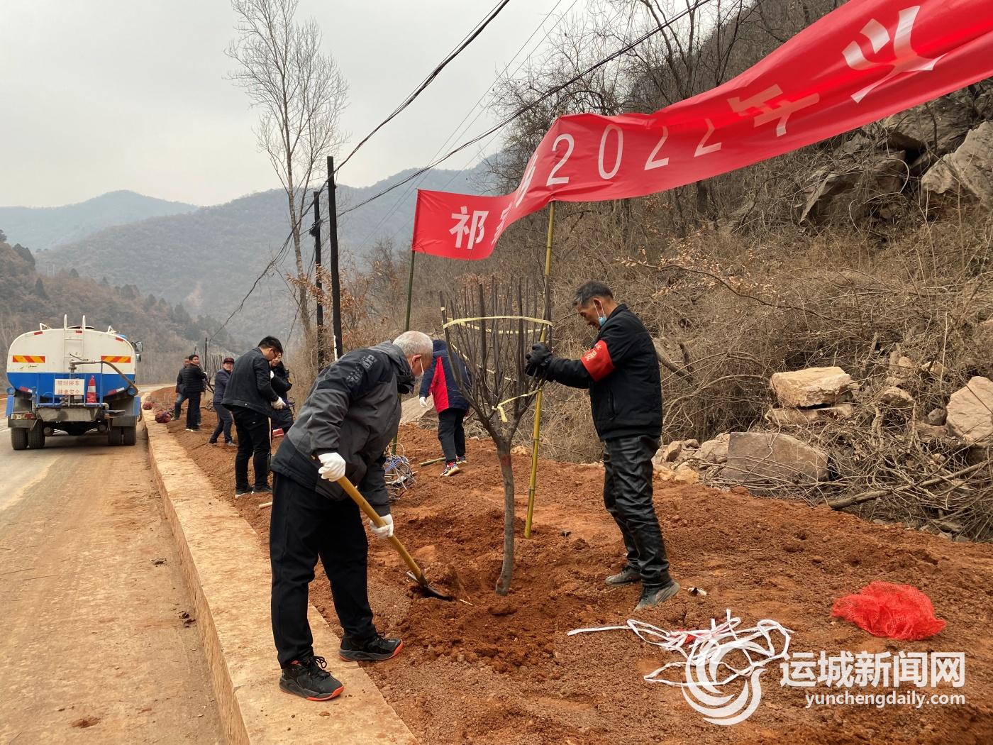 2月17日,夏县祁家河乡党政班子带领机关全体干部、前坪村党员干部,在沿黄1号公路旅游线上开展义务植树活动,共栽植紫叶李风景树300多棵。 张秀峰 韩琳莹