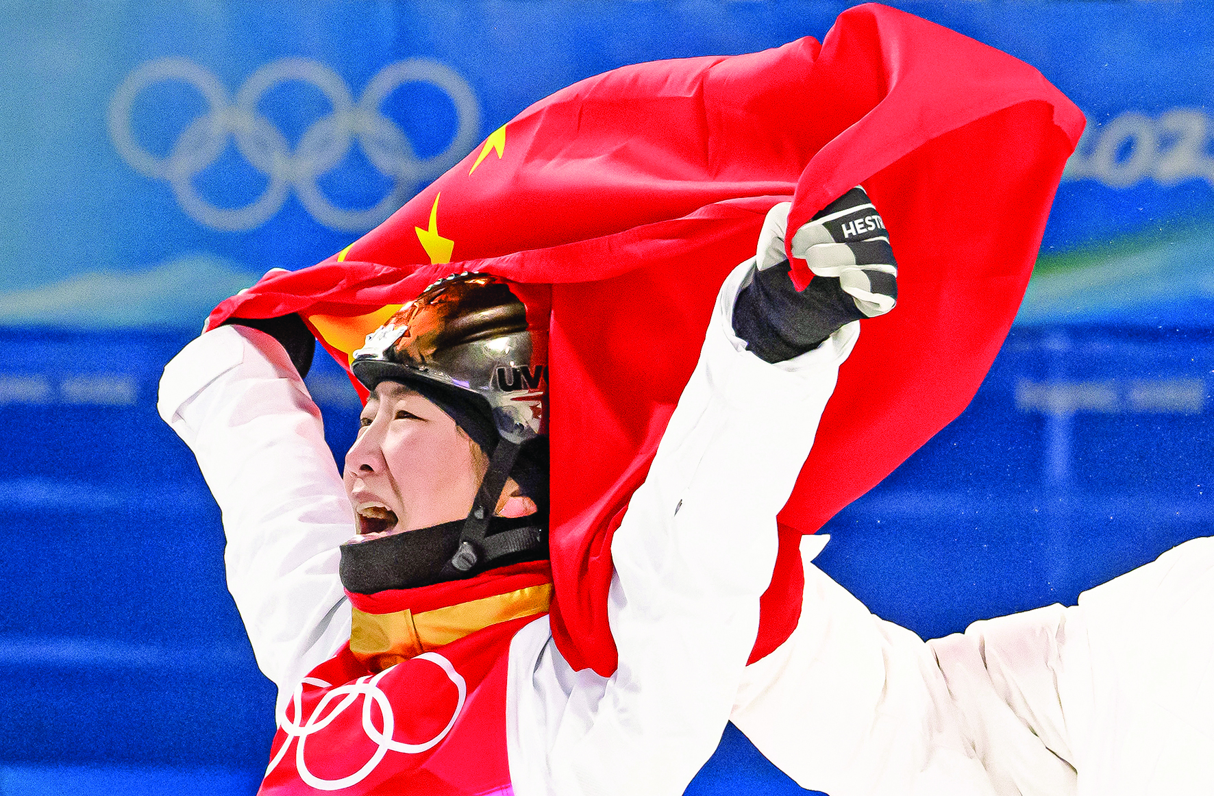 ▲2月14日,中国选手徐梦桃在比赛后庆祝。当日,北京2022年冬奥会自由式滑雪女子空中技巧决赛在张家口云顶滑雪公园举行,中国选手徐梦桃夺得冠军。