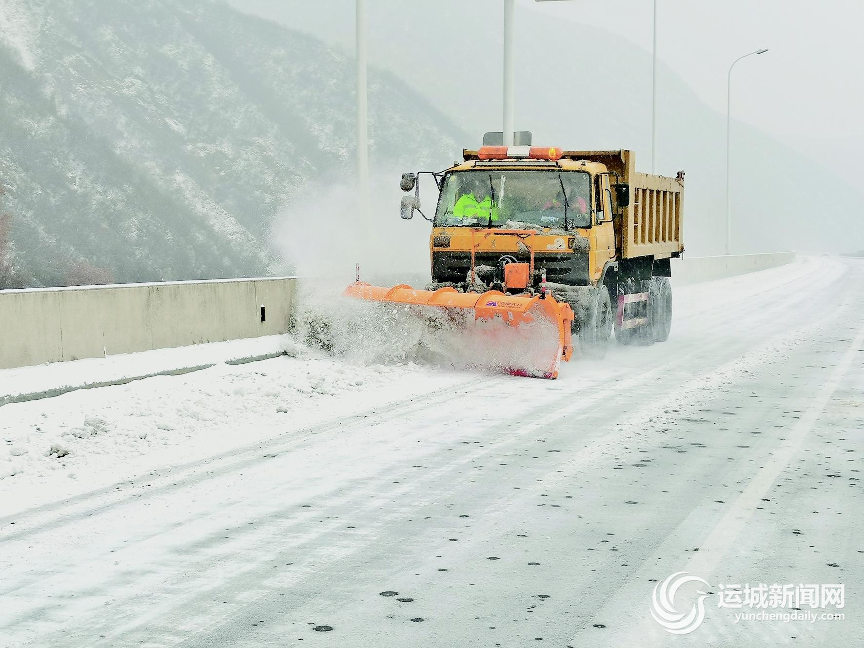 2月17日,运城北高速公路管理有限公司绛县路产维护站的工作人员,在驾驶专业机械清理积雪。