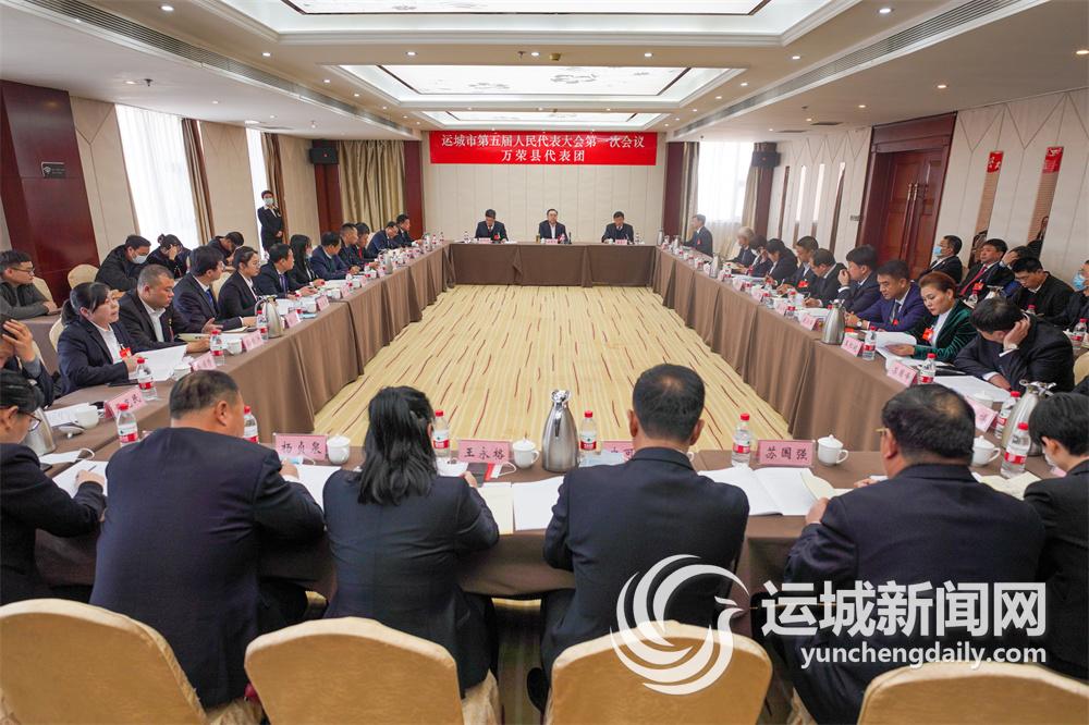 2月21日下午,参加市五届人大一次会议的万荣代表团代表在审议政府工作报告。