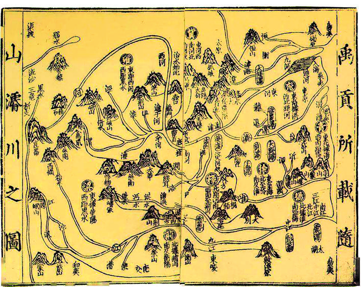 《禹贡》是《尚书·夏书》中的首篇,记载了“禹别九州,随山濬川,任土作贡”的一系列故事,历来被视为与地理、疆域、贡赋等国家治理相关的重要文献。“禹贡图”也称禹迹图,不仅包括历代《禹贡》学著述中所载大禹治水,依山川、导江河、分九州、理贡道的地理图,还包括别贡赋、分夷夏、化荒服的政治治理一类的图。除了对擘画九州的载录外,“禹贡图”及《禹贡》经文在很大程度上与中国早期的贡、赋有着密切的关系。通过对不同区域土壤的考察,综合区域经济状况来确定赋税的等级;通过对各州所出物产的考察,从而确认贡物的品类;通过对水道的疏通与勾连,不仅实现了治水避灾以保民生的目的,也确保了贡赋运输的畅通。而“禹贡图”与《禹贡》篇的形成,由现代考古发现来看,与中国早期贸易中的水道交通的发展关系密切。