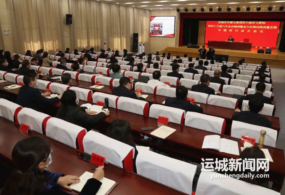 本报讯(记者 王文军)2月24日下午,市管主要领导干部学习贯彻党的十九届六中全会精神暨全方位推动高质量发展专题研讨班开班式在市委党校举行。市委书记丁小强出席开班式,并作开班辅导报告。他强调,要深入学习贯彻党的十九届六中全会精神和习近平总书记考察调研山西重要指示精神,弘扬伟大建党精神,牢记嘱托、感恩奋进,埋头苦干、砥砺前行,奋力拓展运城全方位推动高质量发展新局面,续写运城践行新时代中国特色社会主义新篇章,以优异成绩迎接党的二十大胜利召开。市委副书记、政法委书记王立刚主持开班式。市四大班子领导张润喜、陈杰、王志峰、李晓武、曹晓亮、赵晔等出席开班式。