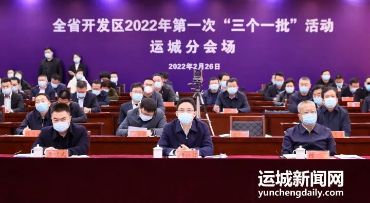 运城日报讯(记者 张 越)三晋大地春来早,扬帆奋进正当时。2月26日,全省开发区2022年第一次“三个一批”活动在各市同步举行。市长储祥好出席运城分会场活动并启动全市开发区第一次投产项目。市领导陈杰、李晓武、赵晔、杜中伟、李玉林、杨彦康、孙中全等出席。副市长李哲主持签约、投产、开工仪式。