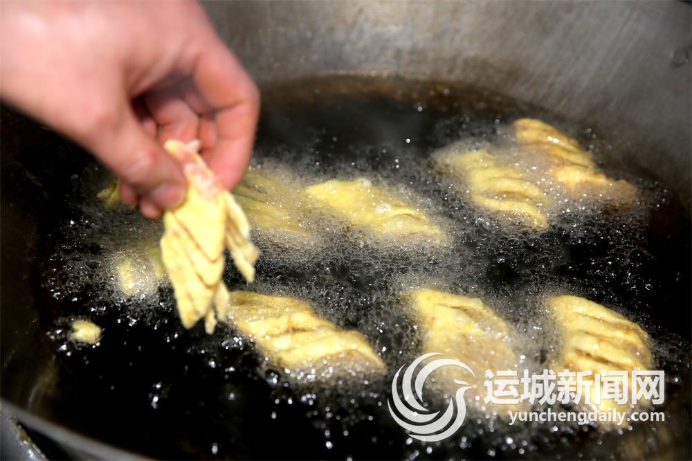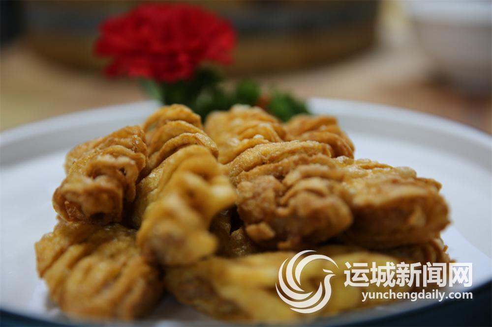干炸佛手,并不是真的炸“佛手”,而是用鸡蛋饼卷着肉馅,切成“佛手”状炸制而成。炸好的“佛手”外酥里嫩、咸香适口,再配上椒盐,味道更好了。