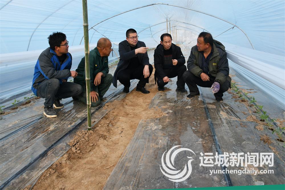 2月27日,闻喜县郭家庄镇宋店村支村委主干到田间地头现场了解大棚西瓜栽植情况。