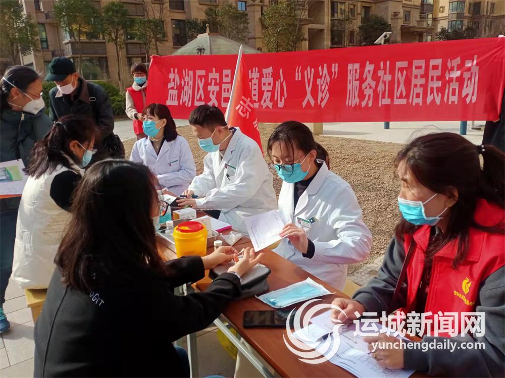 运城晚报讯(记者 李爽)3月5日,盐湖区安邑街道金海湾社区联合同德医院,在辖区金海湾西区广场为居民进行免费身体健康普查,普查项目有血糖、血压等。