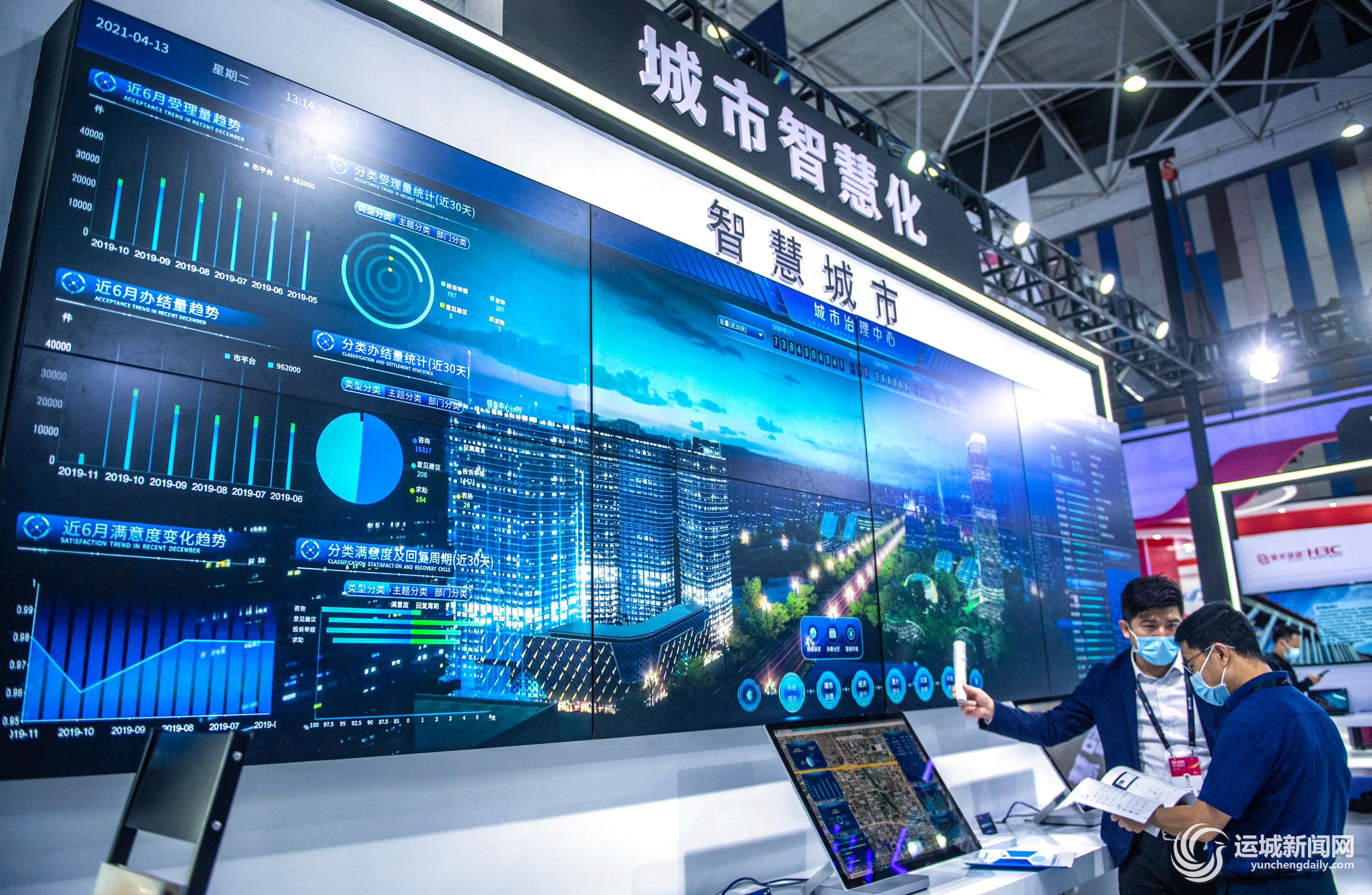 ①为2021年5月26日,在贵阳举办的2021中国国际大数据产业博览会上,参会者在了解智慧城市治理中心。