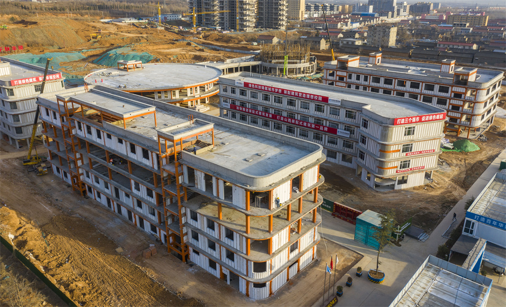 3月7日,垣曲县城北初中项目工地,工人在加紧施工。