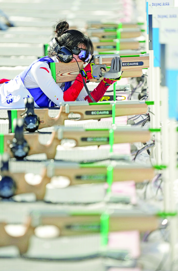 ▲3月8日,中国选手王跃在比赛中射击,最终她获得铜牌。当日,北京2022年冬残奥会冬季两项女子中距离(视障)比赛在河北张家口国家冬季两项中心举行。