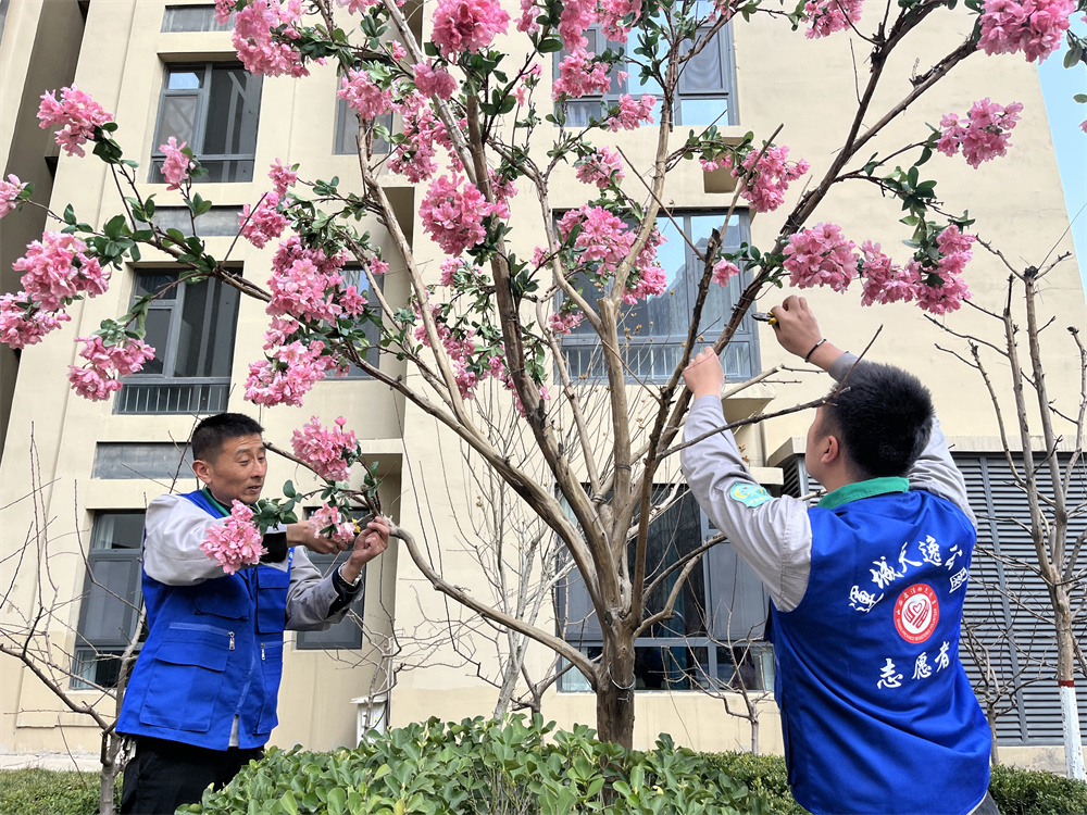 当天,志愿者们穿着蓝色志愿服,拿着夹子、抹布等清洁工具走进五洲观澜小区,捡拾垃圾,擦拭公益宣传提示牌和社区景观物,助力社区环境美化。此外,志愿者们和社区园林工人一起修剪小区景观花木,通过实践交流、互相探讨,共同提高园林技术水平。