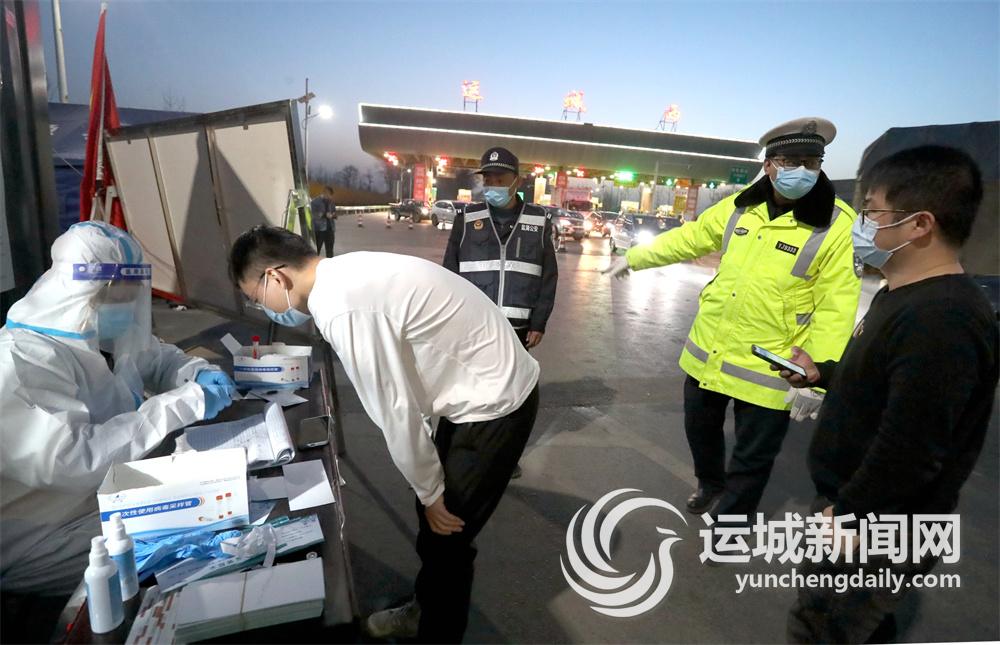 3月7日,盐湖交警大队治超中队民警24小时坚守在运城西高速口疫情防控点,开展路面车辆检查,配合防疫部门筑牢疫情防控防线。