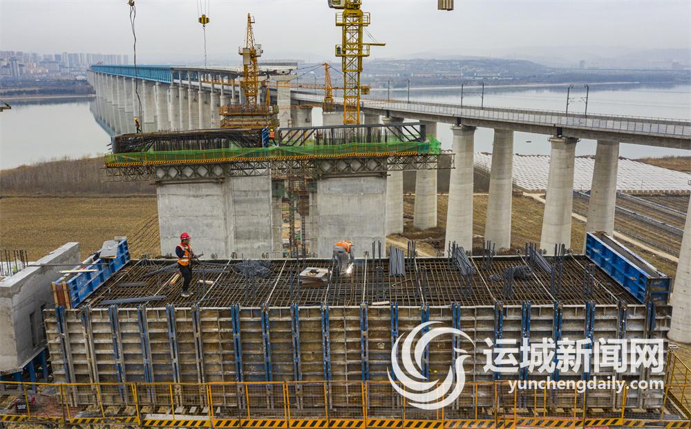 建设中的运三高速公路三门峡公铁黄河大桥连接线工程(3月11日摄)。