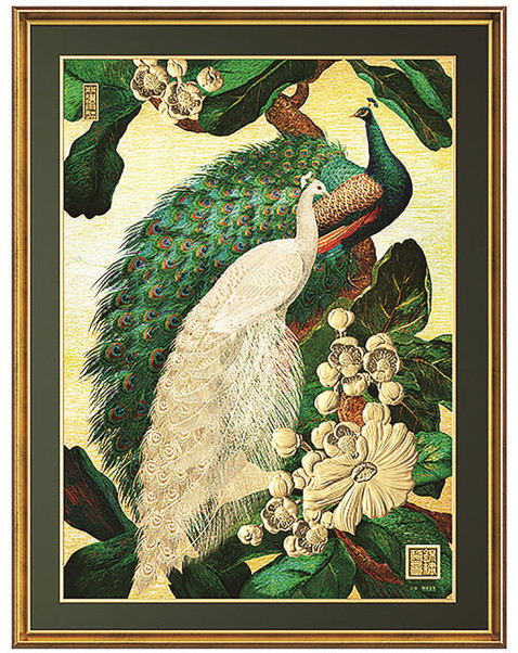 比如,“花开富贵”选取民俗剪纸文化中的“蝴蝶戏牡丹”元素,寓意“生活富足、富贵多财”;以团扇为展现形式,寓意“圆满”,兼具实用与观赏价值。再如“锦绣和美”足金挂屏,取材于汉乐府诗《孔雀东南飞》,旨在弘扬忠贞不渝的爱情观。银翠双栖、相互依偎,寓意“爱情美满、事事如意”。
