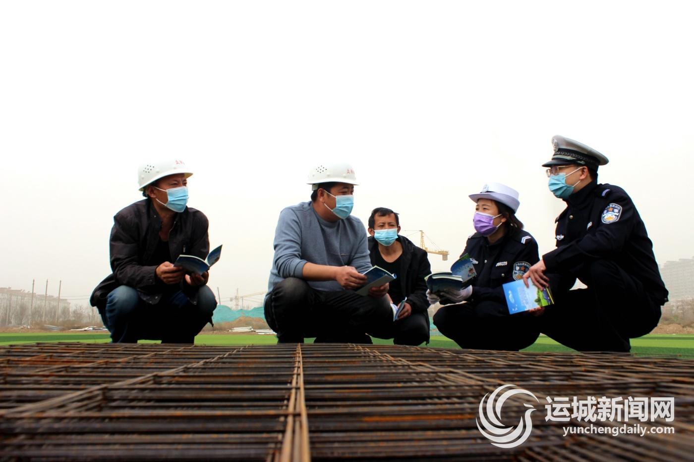 3月14日,稷山交警大队组织民警走进辖区各建筑工地,通过发放宣传资料,给进城务工人员讲解交通安全法规。