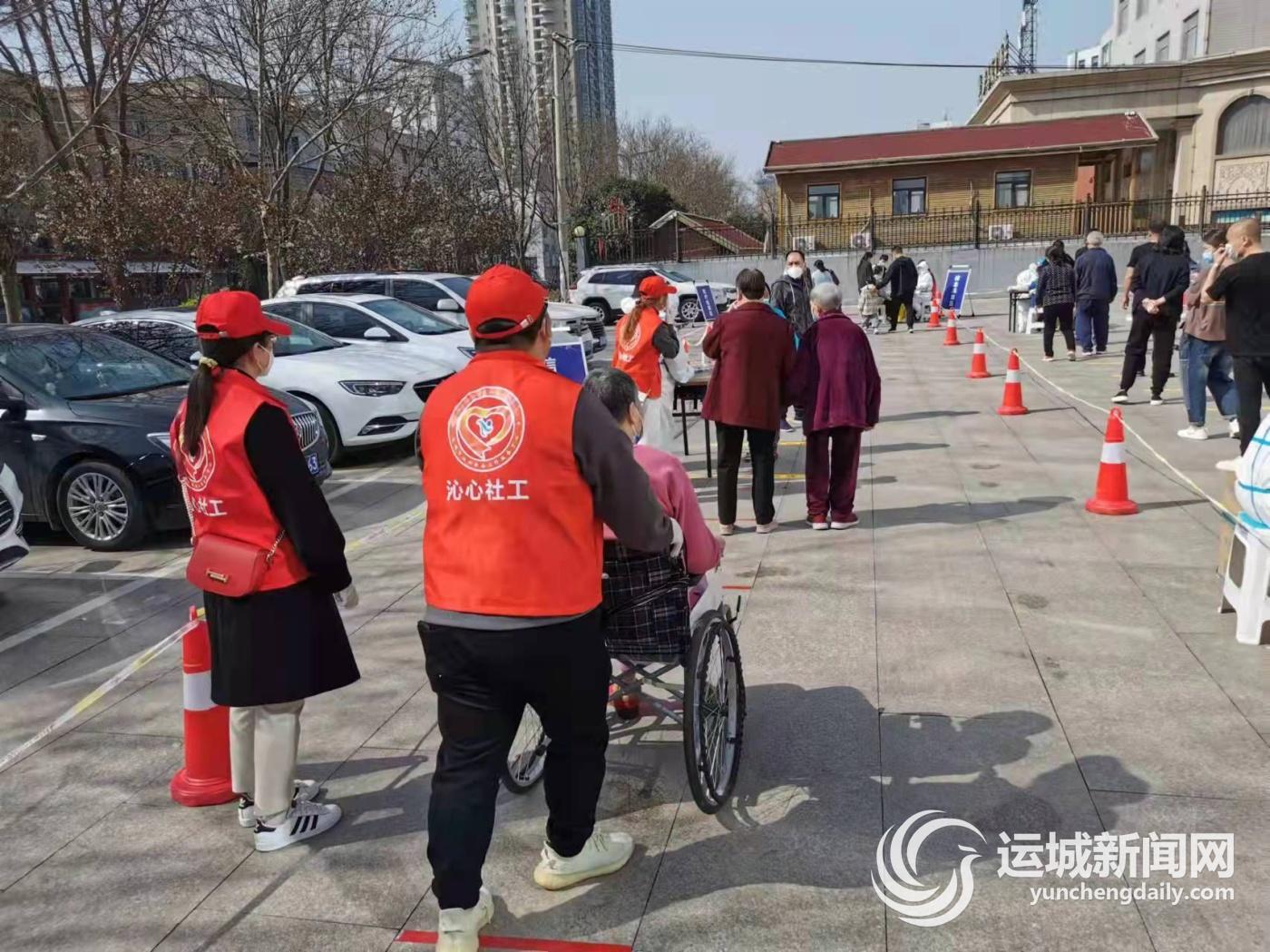 3月13日,在盐湖区东城街道吉祥社区核酸检测点,运城沁心社会工作服务中心工作人员一大早就来到现场,维持秩序、义务解疑、帮助行动不便的老人……该中心工作人员主动参与核酸检测工作,助力疫情防控,赢得了小区居民的称赞。