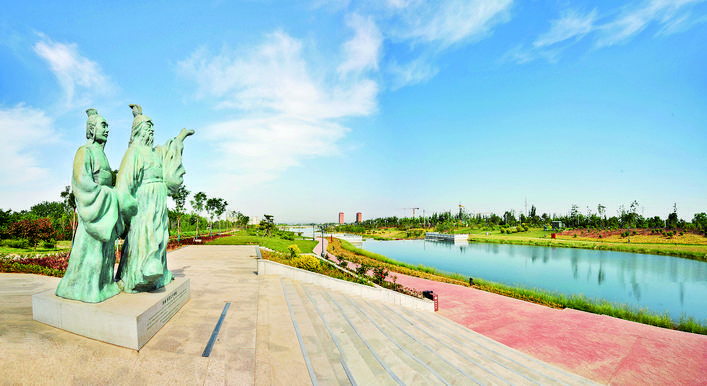 第一次看到夏县白沙河的历史人物铜雕是在一些媒体平台上,一组组阵容强大的雕塑令笔者惊叹。作为河道建设的重要组成部分,其所体现出的厚重文化内涵,引起了很多市民的关注和点赞。近日,笔者专程来到夏县白沙河,近距离观赏这一组组人物铜像,感受历史人物生命的延续和传统文化的绵长。