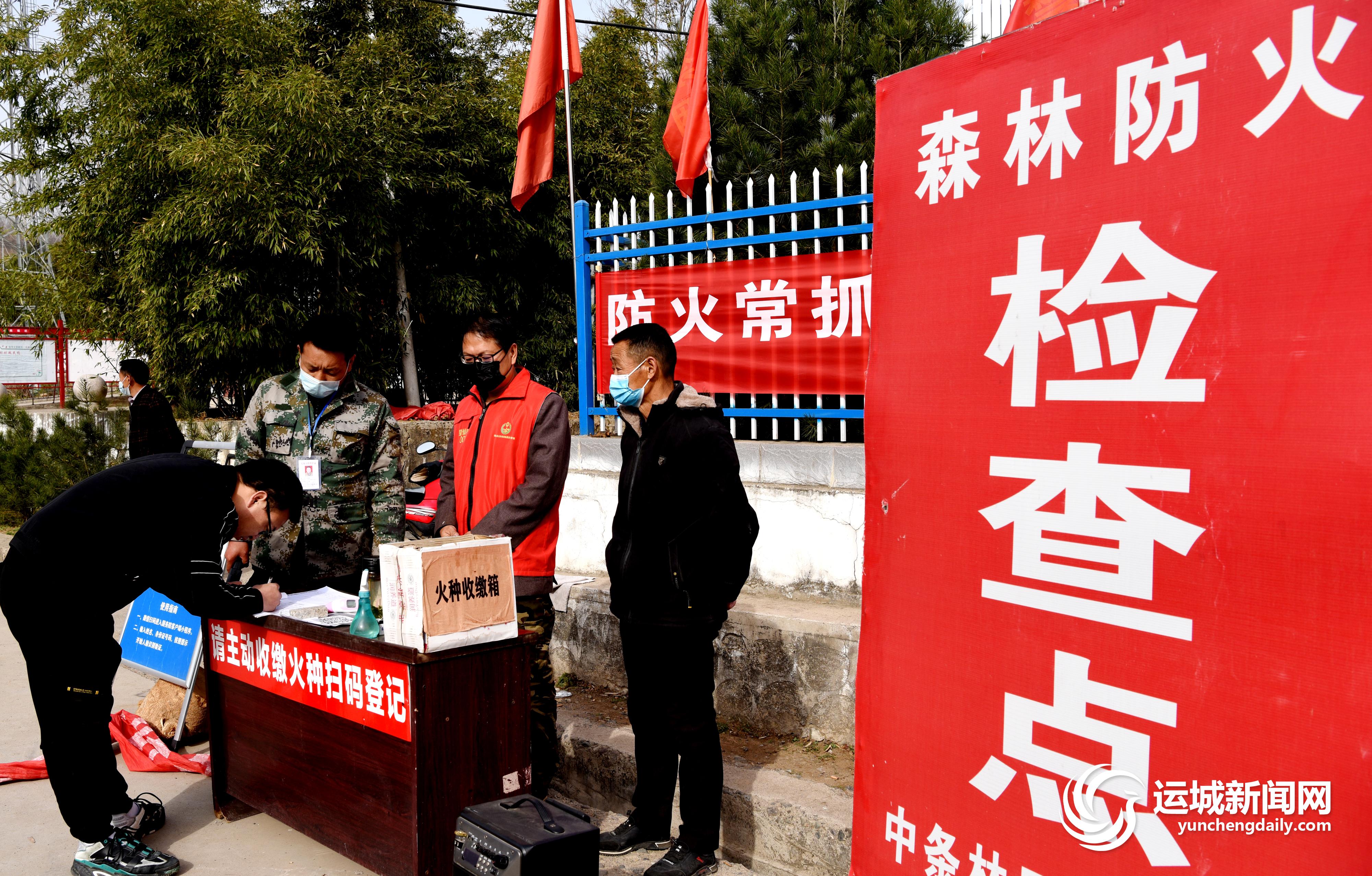 3月18日,垣曲县历山镇望仙村森林防火检查点,过往人员进行实名登记。