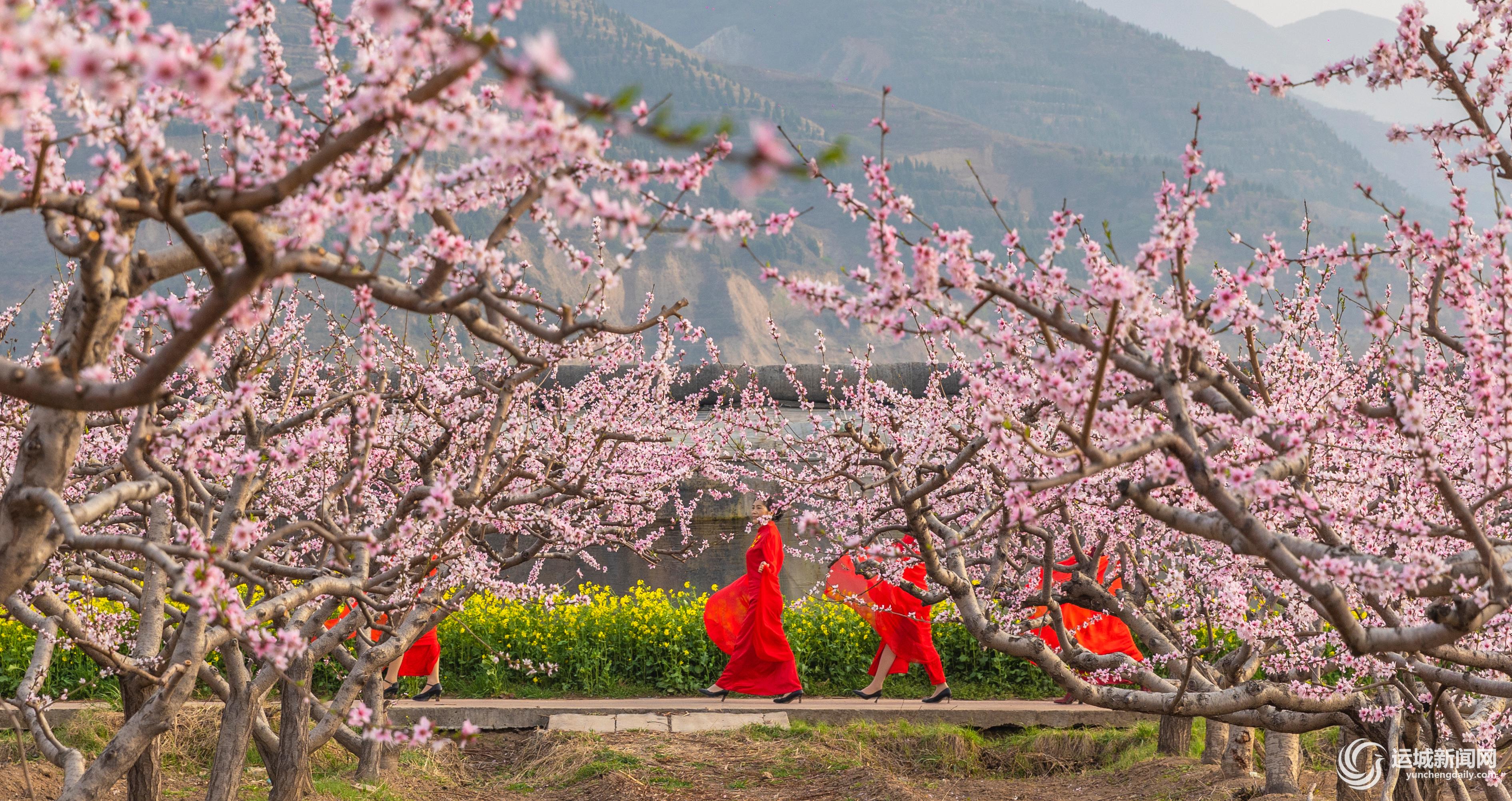 3月18日,永济市城西街道东姚温村田间地头桃花红梨花白,吸引了众多市民前来踏青赏花,感受春天的气息。 特约摄影 杨建峰