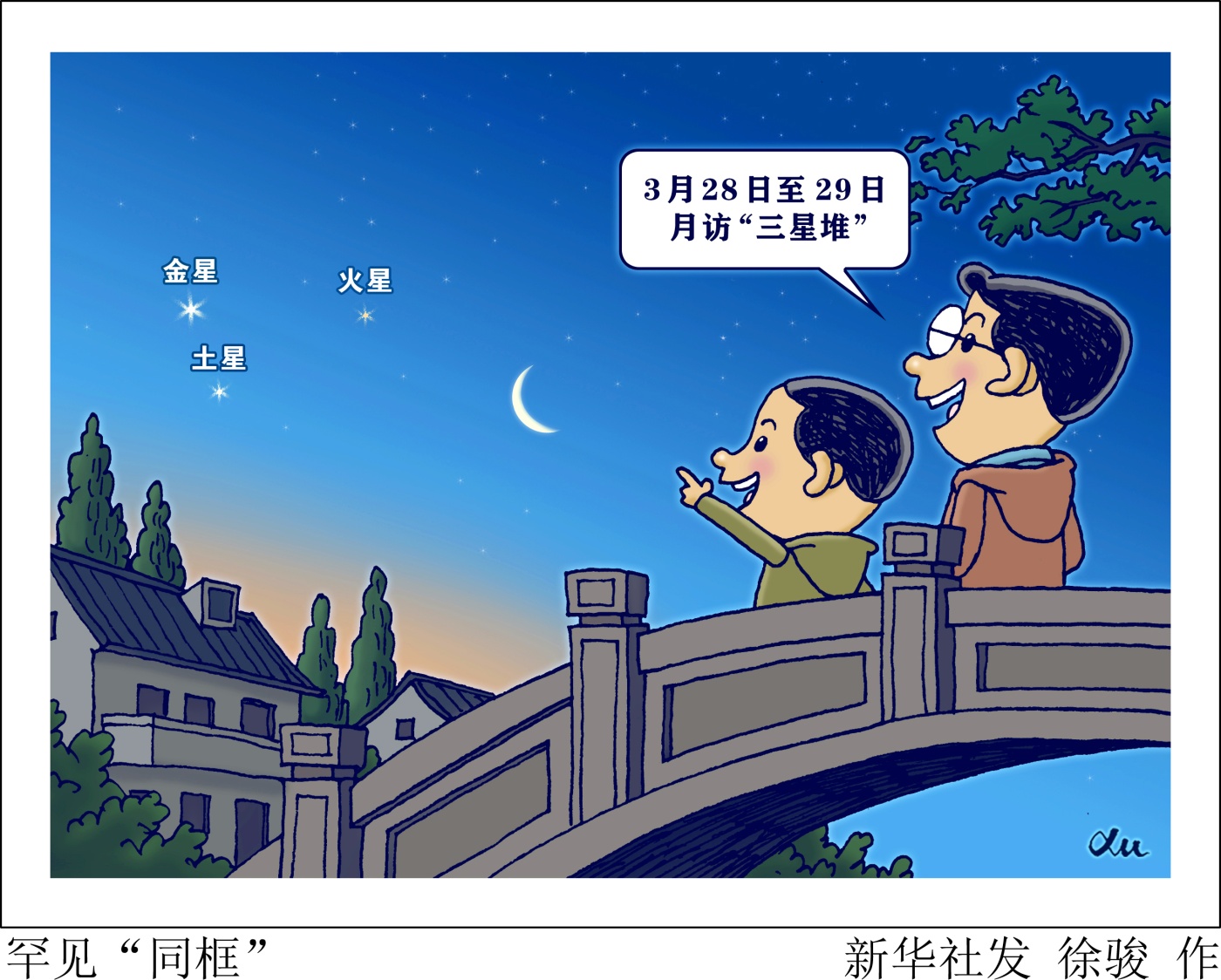 据新华社天津3月26日电(记者 周润健)当月亮附近同时出现3颗明亮的行星会是怎样一幅画面?天文科普专家介绍,3月28日至29日这两天清晨的东方地平线上,日出之前伴随着残月升起的,是扎堆出现的金星、火星和土星这3颗行星。这幕罕见的月访“三星堆”不容错过。