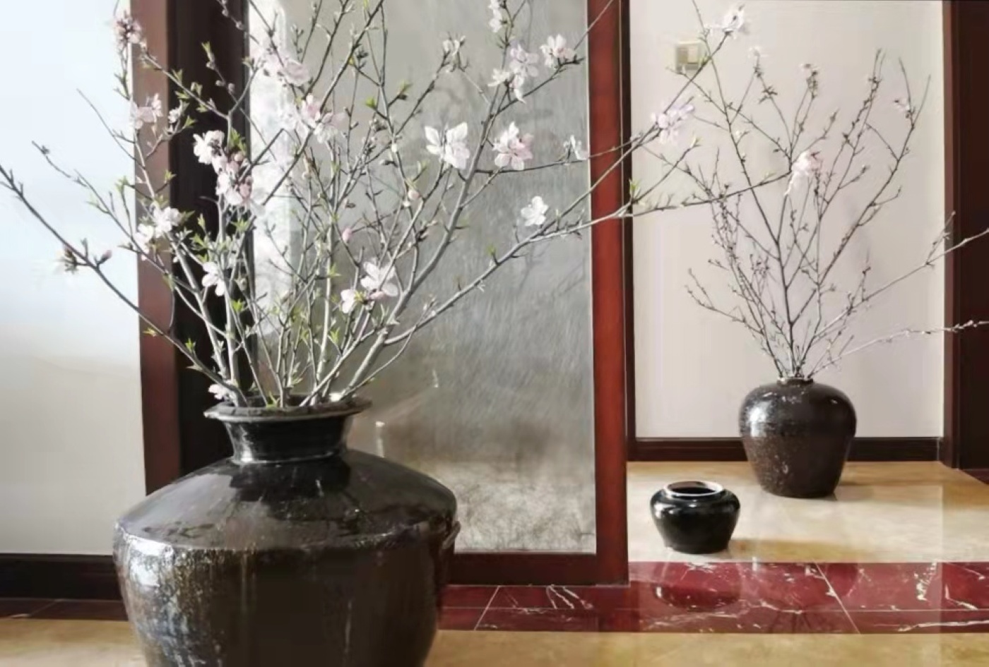 笔者记得去过一个朋友的小院,他是教古琴的,那个院子里也摆放了不少粗瓷罐,记得当时罐子里还插了一个结着石榴的枝条,栩栩如生。笔者靠近仔细欣赏,原来是绢花制作的工艺品,当时就感觉非常漂亮。