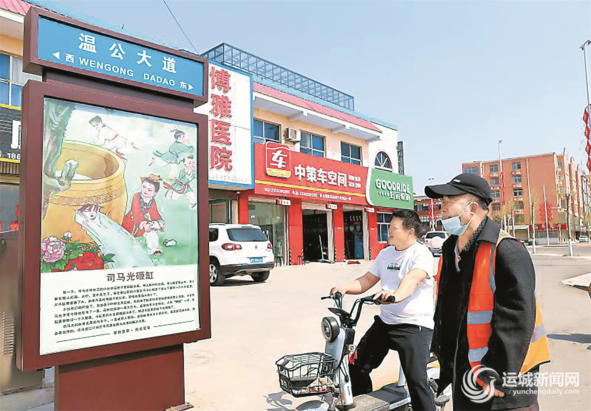 ▲4月1日,夏县县城20个主街、路段、大道、桥梁更名、命名和标识牌制作安装全部完成。标识牌采用灯箱式公益宣传栏形式,新颖别致、美观大方。标识牌分为上下两部分,上半部分包括街路名称及道路走向,下半部分围绕夏县历史名人、地方名优特产、中华民族传统美德等主题进行公益宣传。