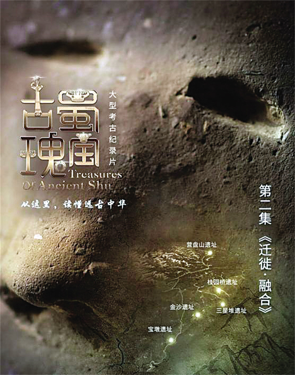 第二集《迁徙·融合》首次全面讲述了甘肃马家窑文化与古蜀文明漫漫迁徙的旅程中,营盘山遗址、桂园桥遗址、三星堆遗址、宝墩遗址、金沙遗址等遗址的演进脉络,通过彩陶、人骨DNA鉴定等多学科研究成果展示,呈现了内涵丰富、成分复杂的古蜀文化。