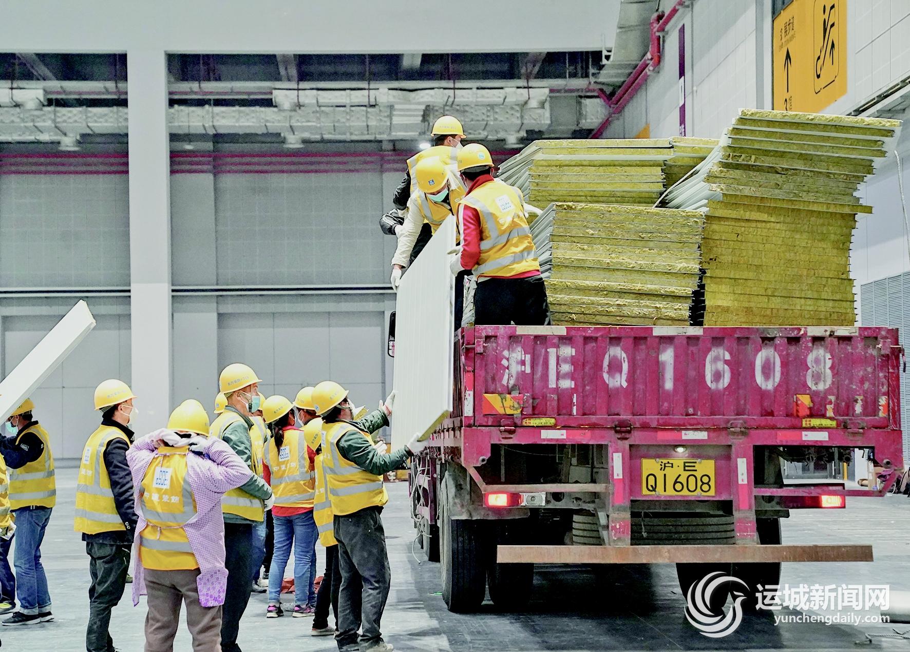 近日,选址在海南国际会展中心的海口方舱医院建设工作加紧推进。据了解,该方舱医院可提供约2000张床位,配套建设可供485名医务人员和320名后勤保障人员使用的工作和生活系统。 新华社记者 杨冠宇 摄