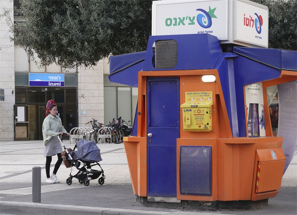 ▲这是4月6日在耶路撒冷拍摄的一处装配有AED(自动体外除颤仪)急救设备的彩票亭。