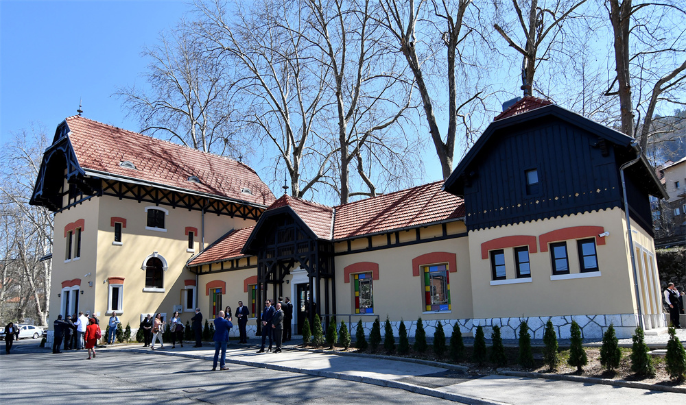 ▲这是4月6日拍摄的修缮一新的波黑比斯特里察火车站外景。