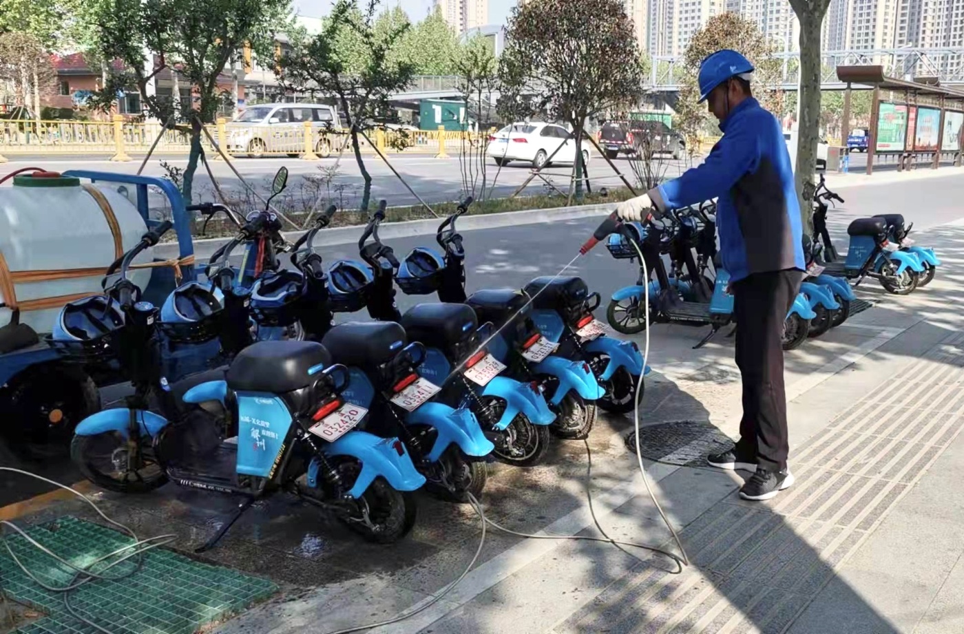 在市区河东东街一停车站点,工作人员对停放点上的共享电动车进行消杀。小彬出行负责人杜波说:“根据市民扫码乘车的流动性、重复性等特点,我们安排专人针对市面运营车辆每天上午8时至次日凌晨4时采取分区域、划片区的不间断消杀方式,每个区域安排3个工作人员对还回车辆进行及时消毒,确保下一名市民的安全使用。此外,对运回仓库的保养和维修车辆,公司将对其进行消杀后再次投入市场。”