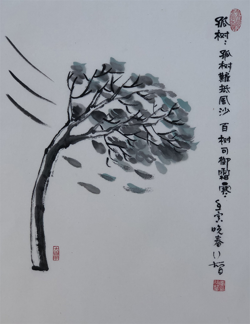 孤树:孤树难抵风沙 百树可御霜寒(让理念染绿你的心房,让行动改善我们的环境。)
