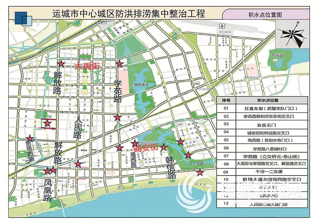 结合去年在防汛抢险过程中发现的问题,该中心经过多次现场勘察测算和反复讨论,梳理出中心城区现有13个路段存在滞水点。分别为:铺安街与韩信路交叉口、学苑路八里铺村口、学苑路立交桥北、人民路交通银行大厦前、百货大楼门口、购物中心门口、机场大道与货场路交叉口、大禹街口与学苑北路交叉口及大禹街与解放路交叉口、安邑西路与河东东街交叉口、禹西路首创水务门口、红旗东街武警支队门口、干河一二支渠、铺安街安邑石门。