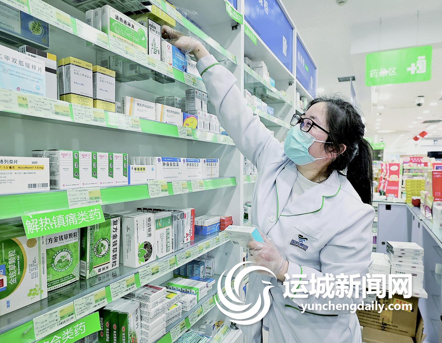 4月10日,上海国大药房南京西路店员工梁婷婷在店内为顾客挑选药品。