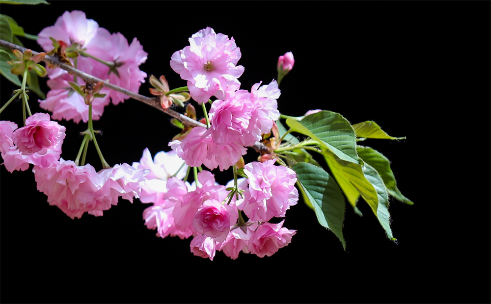 樱花树上,一团团,一簇簇,红的像火,白的如云,粉的似霞,千般姿态,万般妩媚。