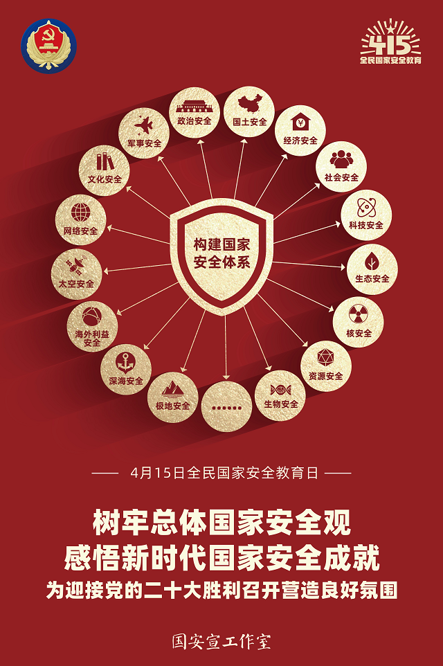 黄河新闻网讯 《中华人民共和国国家安全法》第十四条明确规定,每年的4月15日是全民国家安全教育日。今年的4月15日是第七个全民国家安全教育日,主题是“树牢总体国家安全观,感悟新时代国家安全成就,为迎接党的二十大胜利召开营造良好氛围。”在这个特殊的日子里,让我们一起学习下相关知识吧!