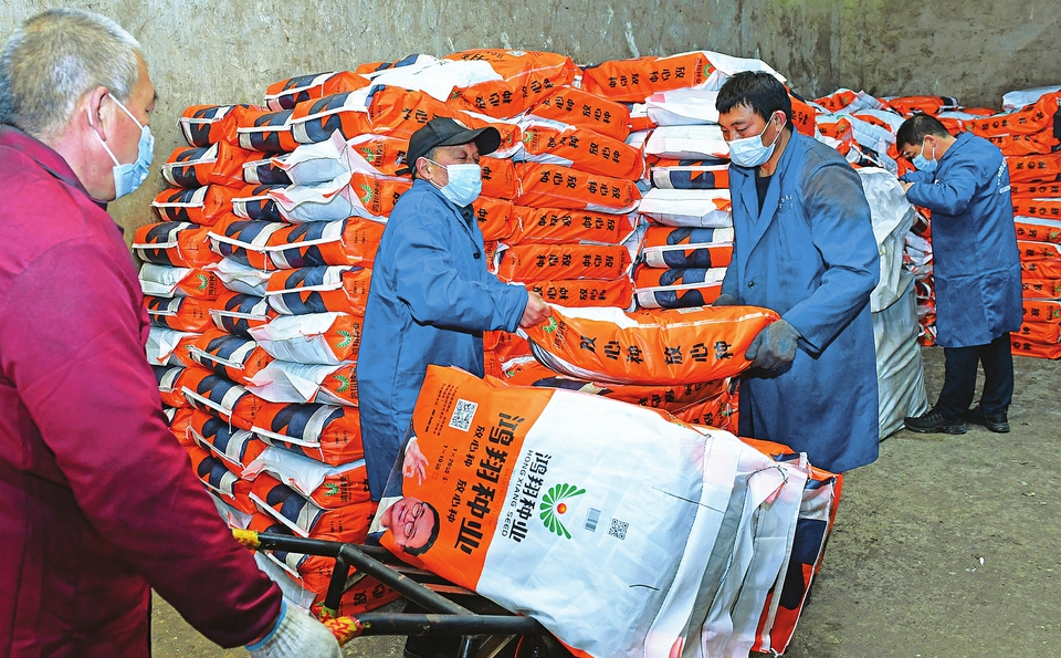 4月11日,在长子县清风农资连锁有限责任公司,工人师傅正在转运种子。为切实做好春耕备耕工作,长子县农业农村局提早调运化肥、种子、农药等农资产品,为春耕生产备足“粮草”。