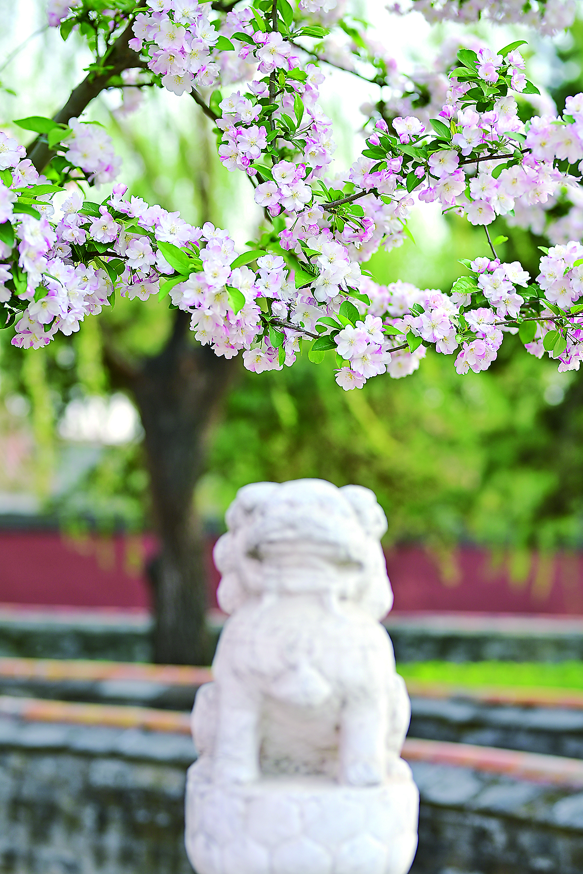 近日,北京故宫博物院内的海棠花竞相绽放,芳香四溢。 新华社记者 尹栋逊 摄