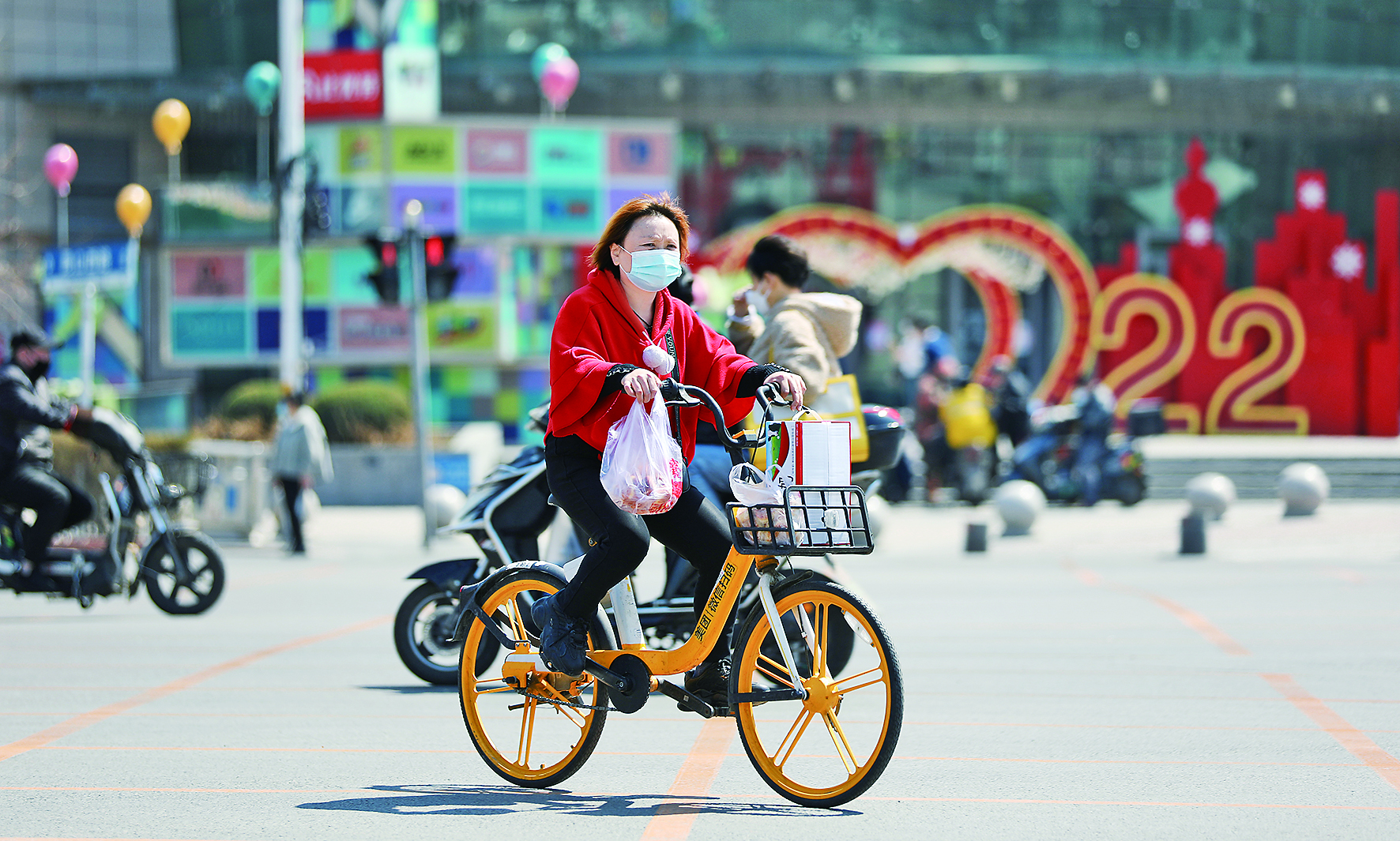 4月13日,市民在沈阳街头骑共享单车出行。