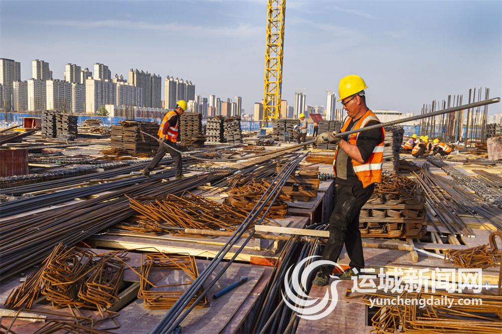 近日,在市会展中心项目施工现场,工人在加紧施工。