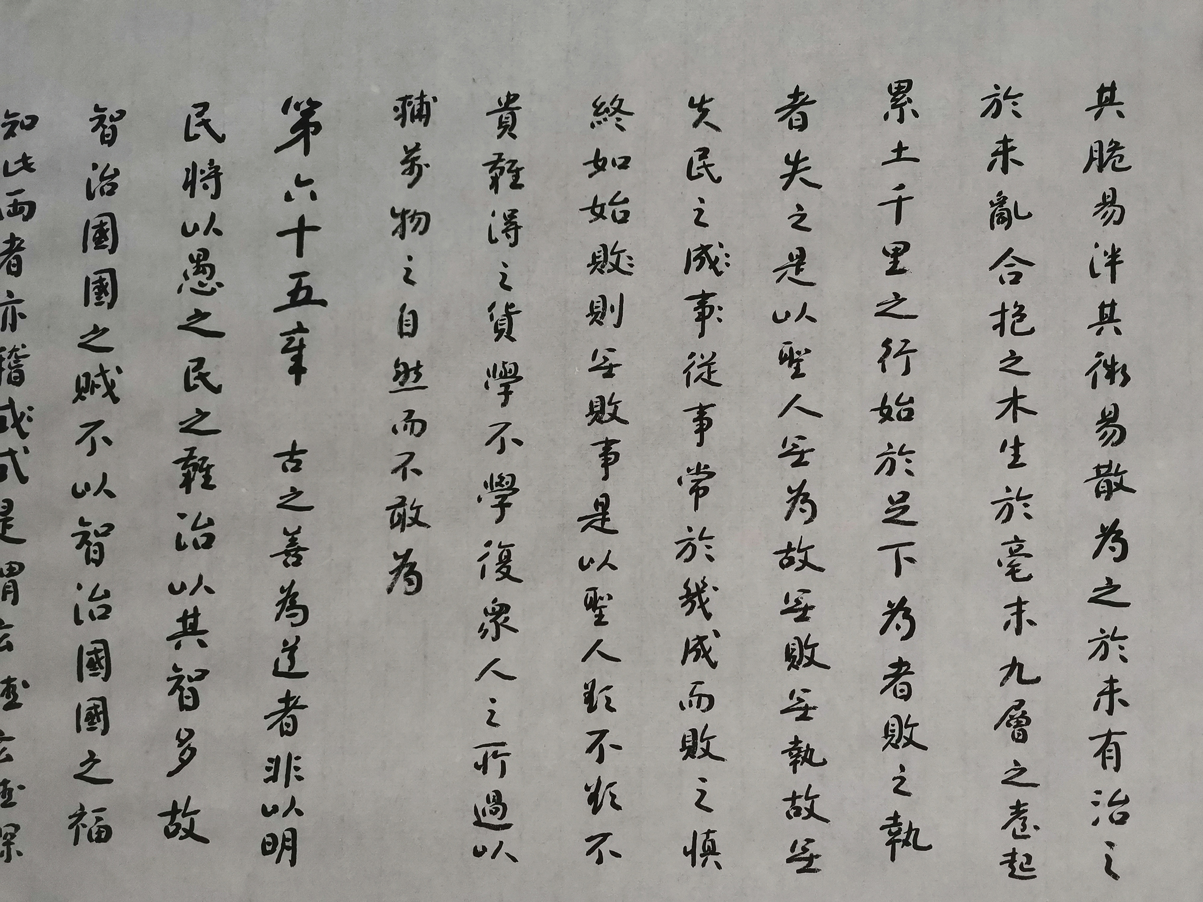 见到老凹先生时,他在誊写老子的《道德经》。