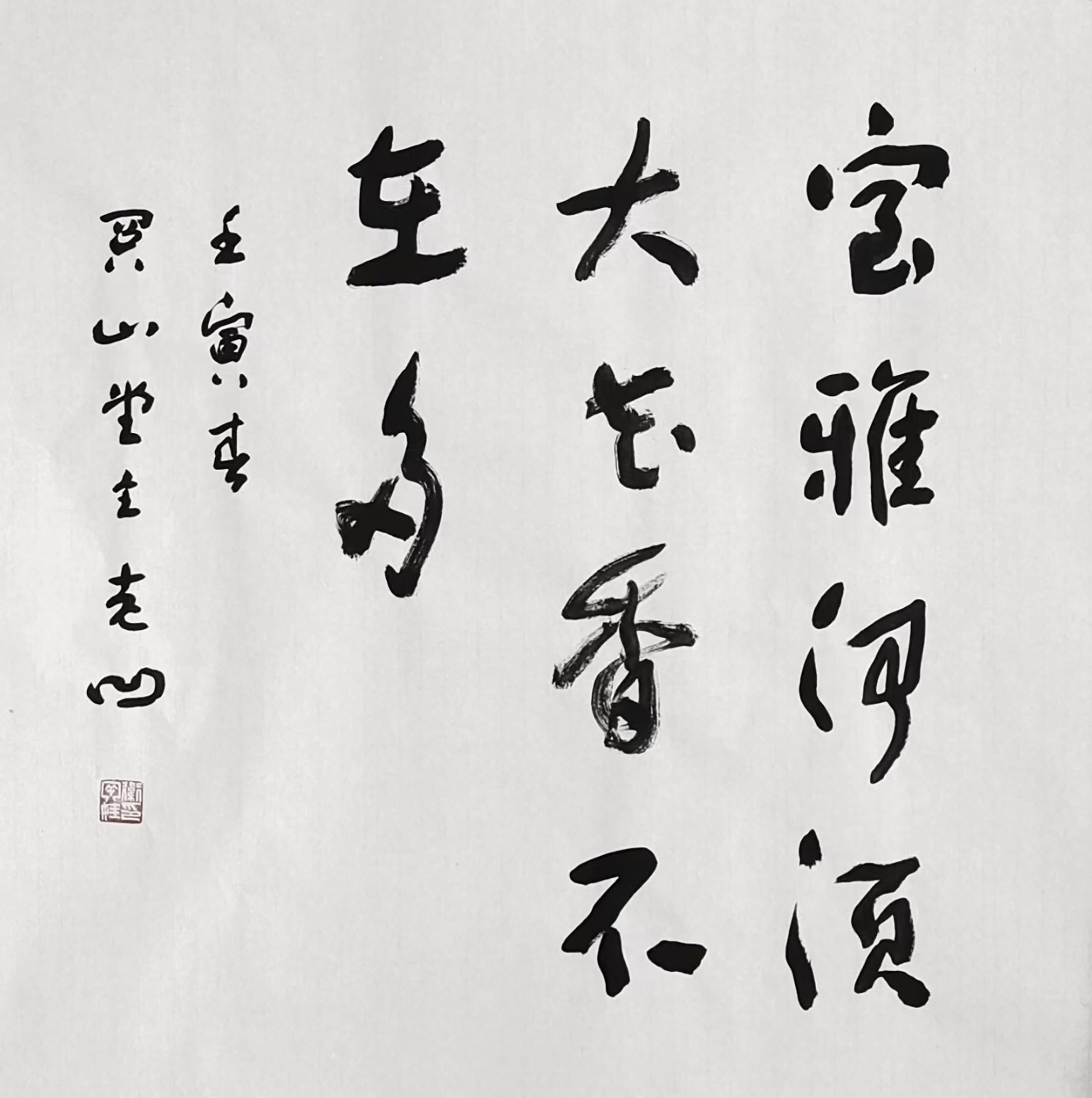 “观其书,先生虽依然故我,神寄于心、形随于意,袭以往之书风、抒自个之性情,然于尺幅中、行字间,犹可发见其在故中求新、常中求变。从容而静穆、简约而峻健。笔法萧散,逸若云鹤;骨气深稳,劲如崖松。加之先生又擅词章,诗书联袂,情高韵远,相映成趣。”