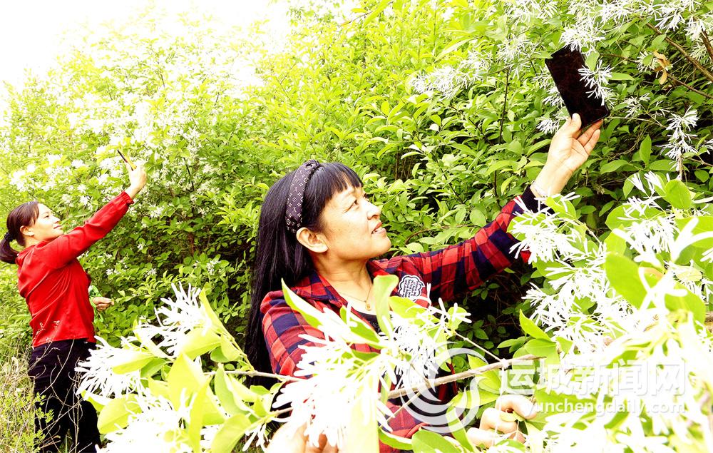 近日,夏县高山流苏基地大片洁白的流苏花盛开,吸引许多游人前来赏稀奇、拍抖音。