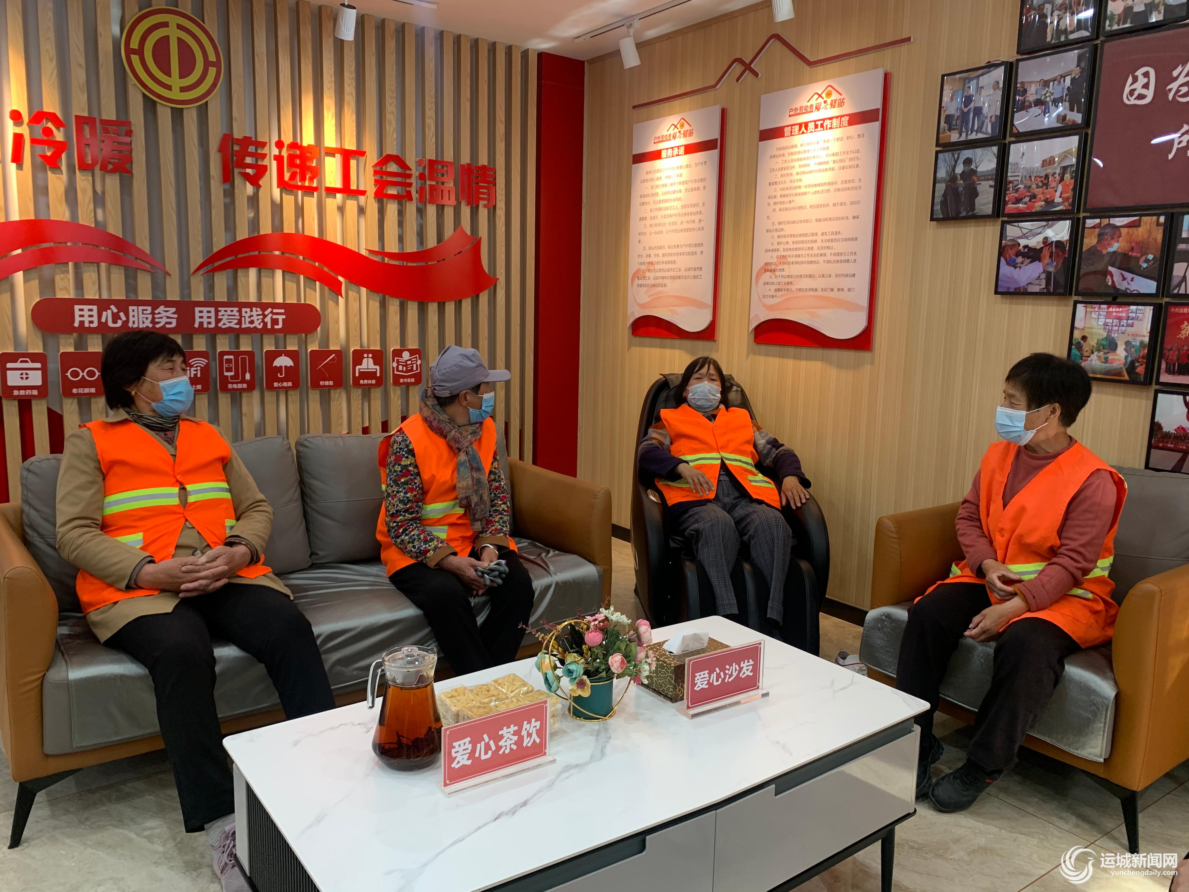 “以前累了只能找店铺的屋檐、过道站会儿,现在只要工作有间隙,就会来爱心驿站坐坐,吃点小零食,把这里当成了第二个家。”高漂亮说,累的时候在爱心驿站吹着空调、打个盹儿,给手机充充电。工作人员的服务很贴心,让户外劳动者觉得十分温暖。