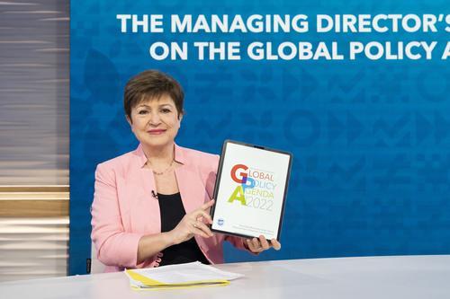 ▲4月20日,在美国华盛顿,国际货币基金组织(IMF)总裁格奥尔基耶娃出席线上记者会。国际货币基金组织(IMF)总裁格奥尔基耶娃20日表示,中国政府有充足政策空间应对经济下行压力,有能力提振中国经济。