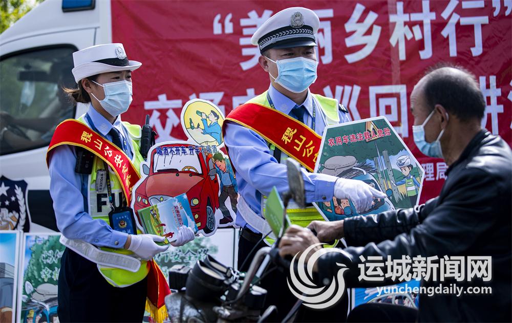 “近段时间以来,村民都忙碌起来,引水灌溉、施肥,车辆也多了起来。”稷山县交警大队大队长支伟说,“农村道路弯曲狭小,村民交通意识不强,容易引发交通事故。” 既要预防和减少涉农道路交通事故,又要保障农户春耕之需,运城市公安局交警支队联合稷山交警大队按照“减量控大”工作要求,在严峻复杂的疫情防控形势下,联合农村疫情防控卡口,开展了一场疫情下的“美丽乡村行”交通安全文艺巡回宣讲活动。