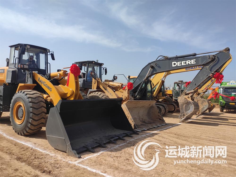 ▲开工仪式现场,挖掘机、推土机蓄势待发。