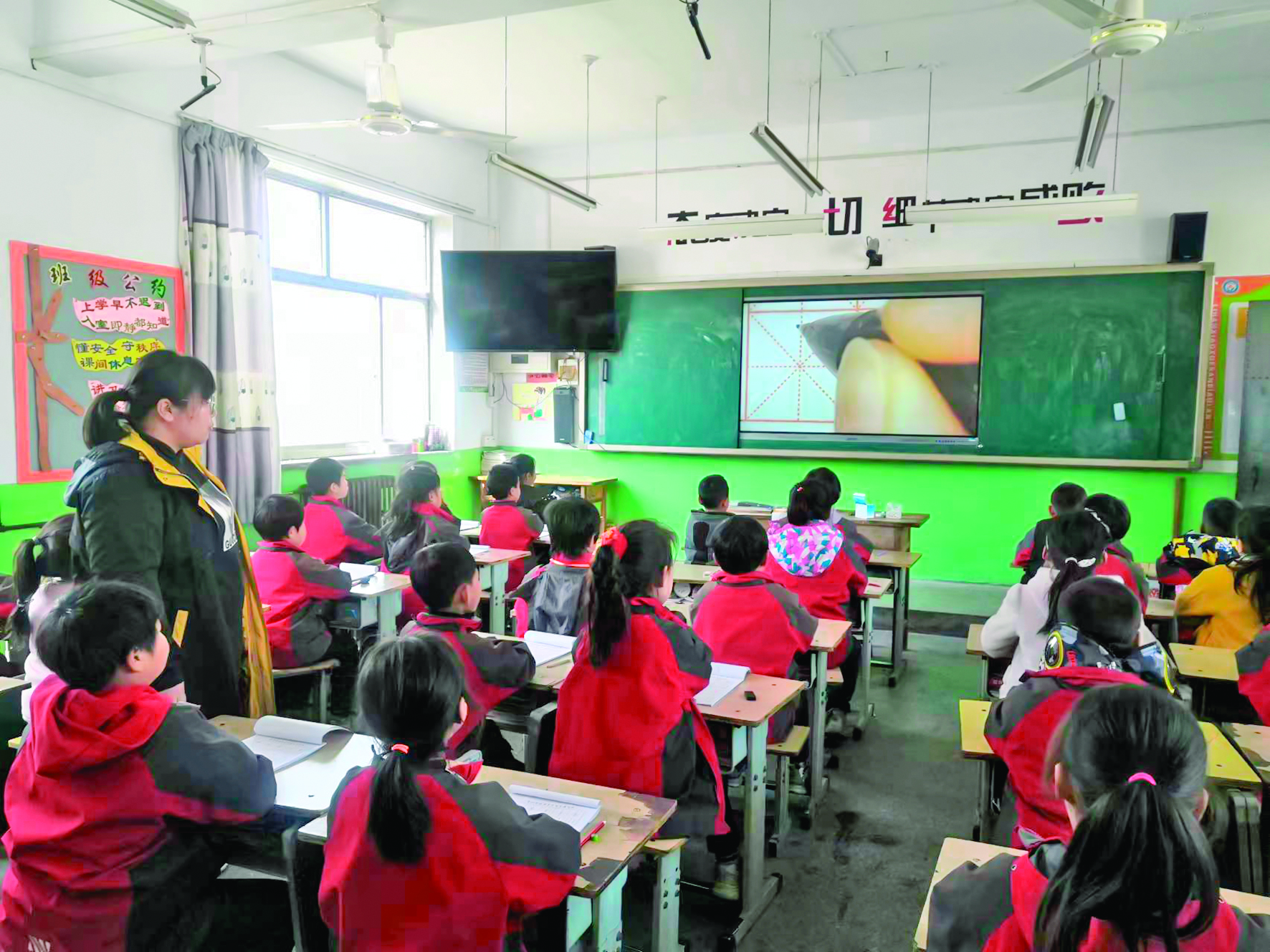 “同学们,把自己的小黑板拿出来,今天咱们练习粉笔字……”在临猗县楚侯乡李汉小学一年级教室里,老师开始给学生教粉笔字。只见每个孩子都拿出自己的绿色小黑板,开始上课,孩子们兴致勃勃,积极练习。这是该校每天午后上课前半个小时全校的共同学习时间,也是临猗县在全县中小学开展的习字工程的一个缩影。
