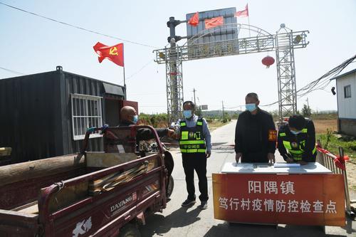 4月28日,运城供电公司驻闻喜县阳隅镇笃行村乡村振兴工作队队员在村口疫情防控值守点查验过往村民的“三码”。 该工作队发挥党员先锋模范作用,积极宣传疫情防控知识,带头到驻村卡口严防死守,用实际行动彰显共产党员的时代风采。 特约摄影 张德福 摄